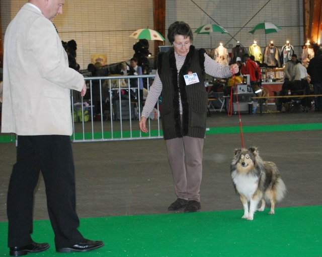 ex type sur la plus grande taille mais féminine belle tete dentition complète belle expression forte encolure bons mouvements les épaules pourraient etre plus en arrière - queue correcte - pourrait etre mieux brossée - museau un peu fort -la poitrine pourrait etre plus large - excellent caractère